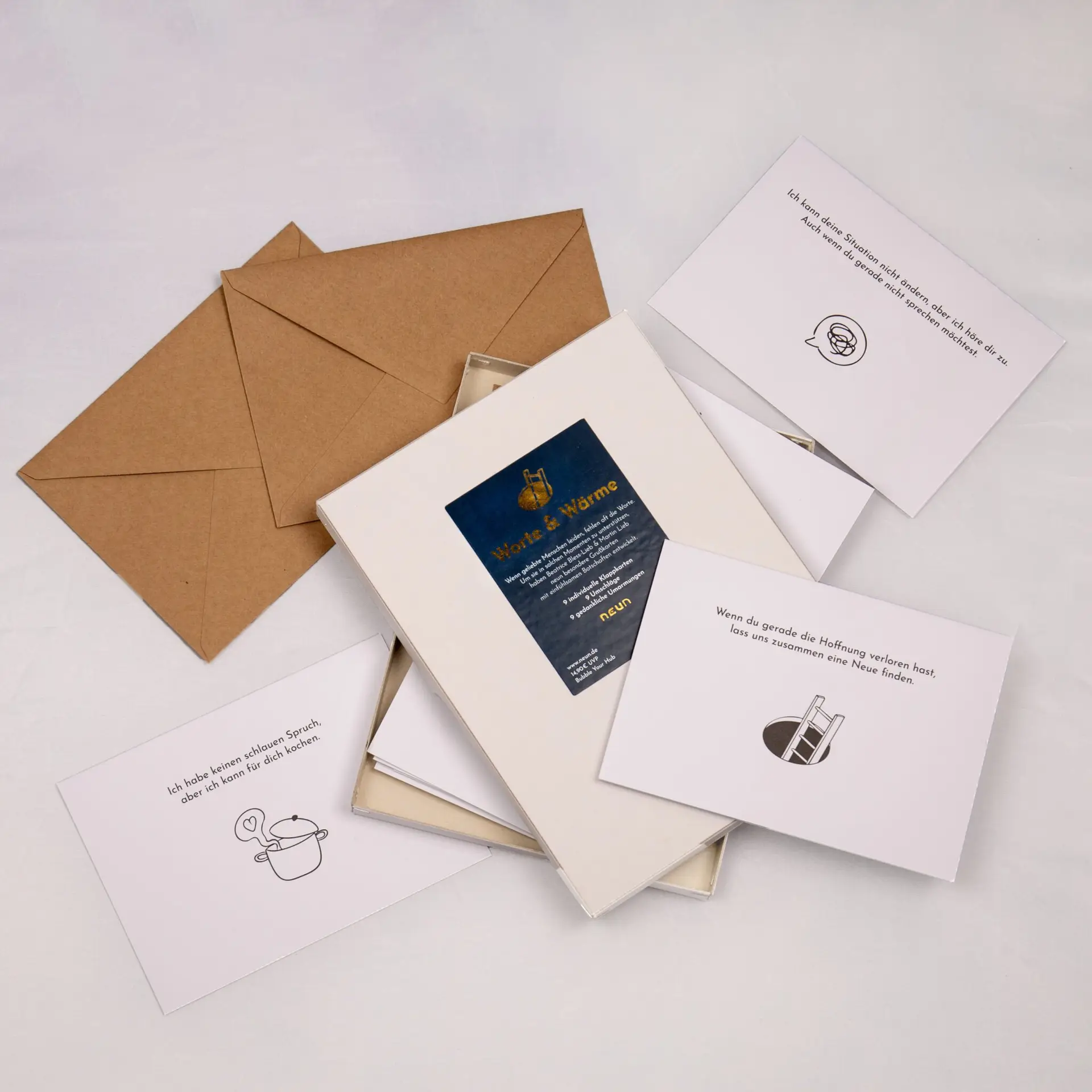 Diese Karten sind mehr als Grüße – sie sind kleine Zeichen des Mitgefühls, die Mut machen, berühren und zeigen: „Ich bin da. Auch wenn mir die perfekten Worte fehlen“.